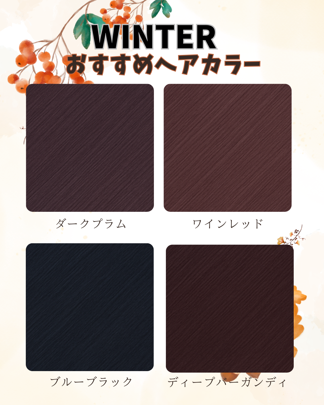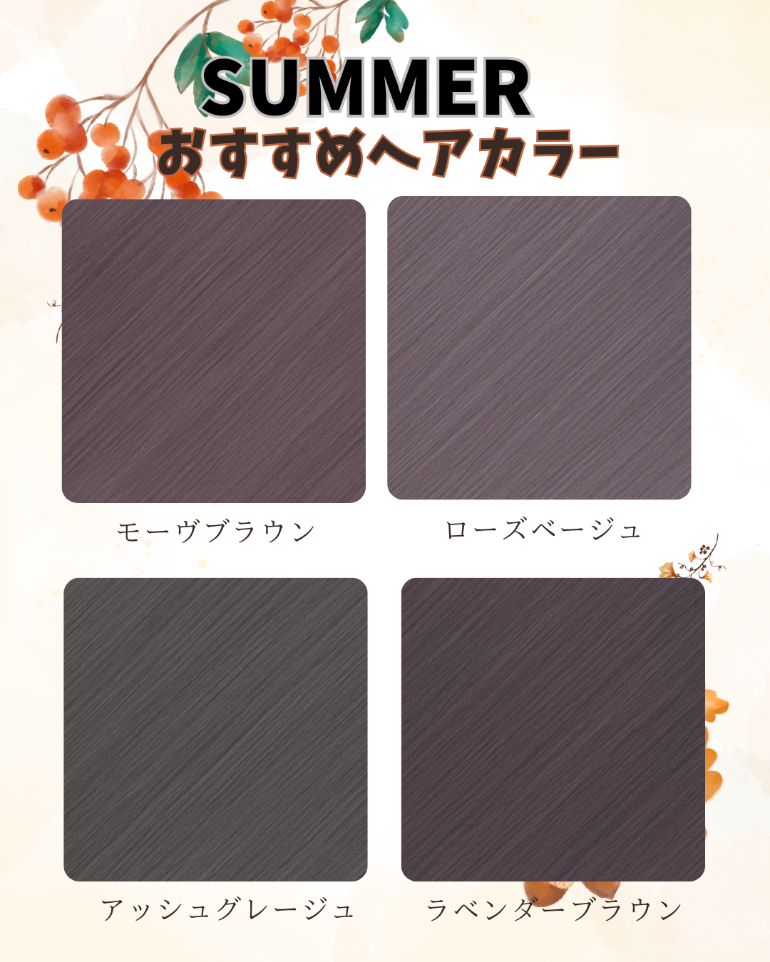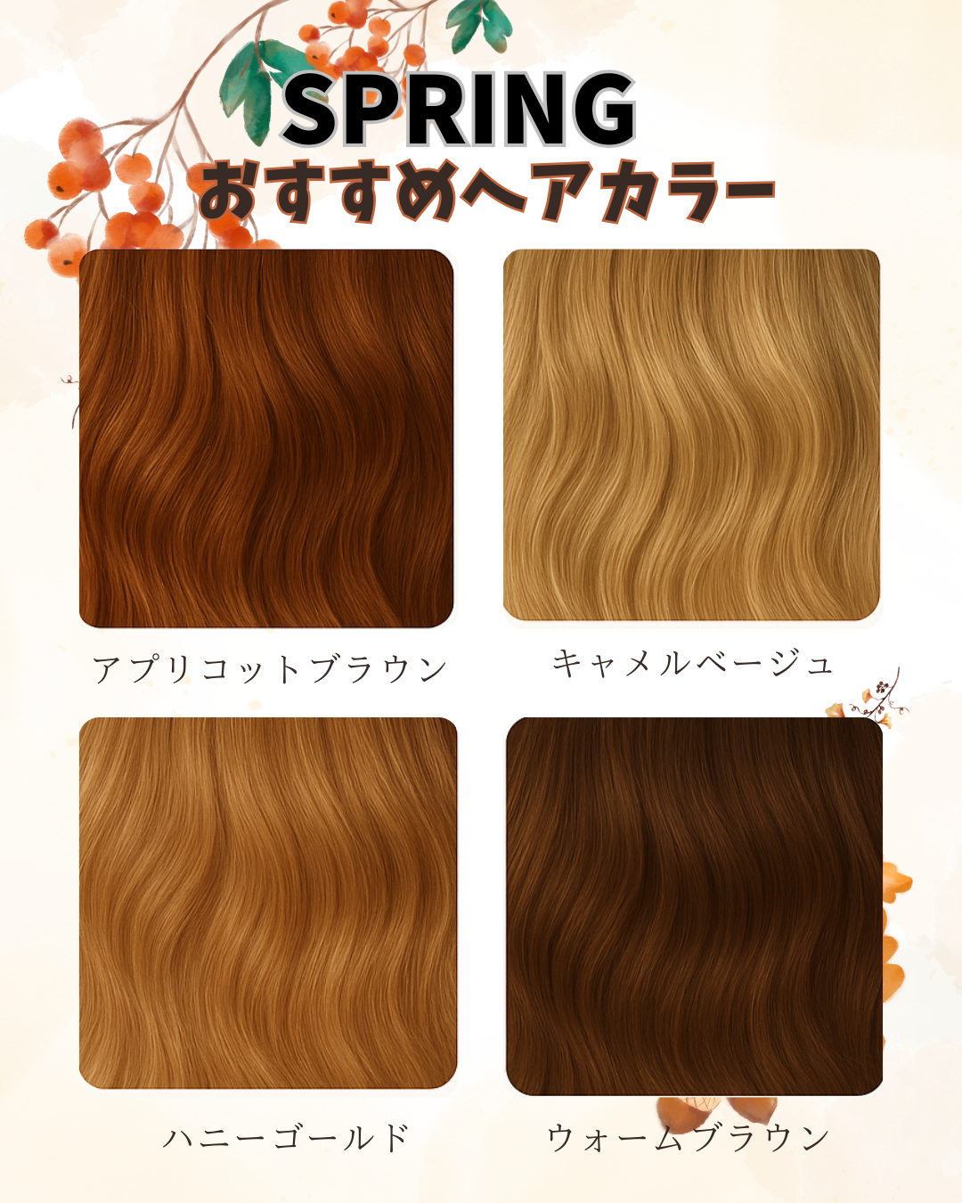 今回はパーソナルカラー別おすすめの秋色ヘアカラーをご紹介します。