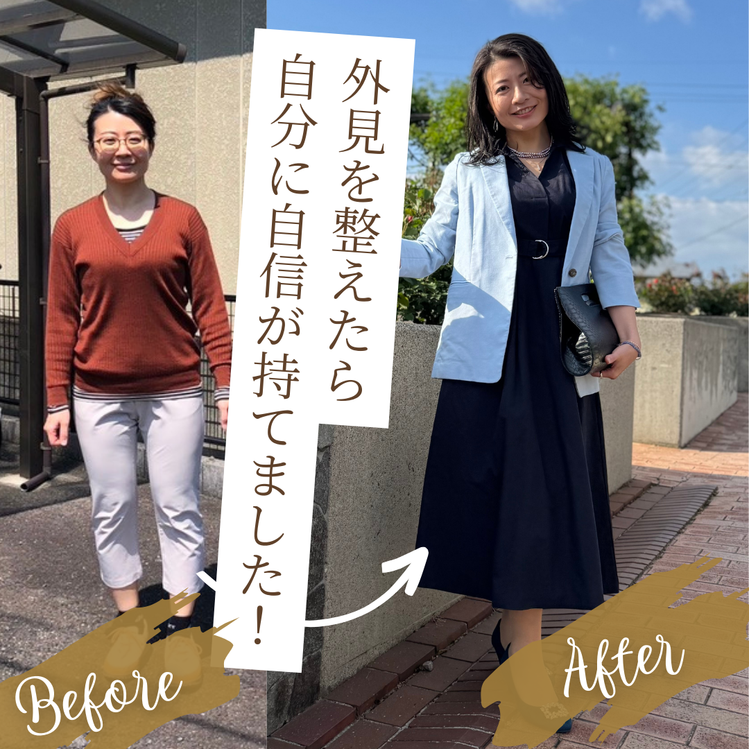 人前に立つ機会が多く、見た目の印象は大切だと感じていましたが、 自分に似合う色やスタイルについてはあまり深く考えたことがありませんでした。 今回の診断とショッピング同行で、自分の魅力を引き立てる髪型、色やスタイルを知ることができ、とても有意義な時間でした。 似合う色を身につけると自然と自信が持てるように感じ、外見が与える印象の大きさを改めて実感しました。 周りからの反応や対応が全然違う! 写真を撮るのが楽しみになりました。